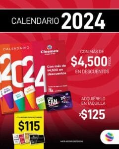 Cinemex anuncia que ya está a la venta su esperado Calendario Cinemex 2024 con grandes descuentos y promociones especiales para todos los amantes del cine y el entretenimiento.