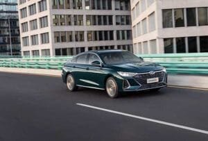 En lo que respecta a la parte trasera adopta un diseño de luz penetrante en forma de ala y doble salida de escape. Las dimensiones del vehículo, de 4.780 metros de largo, 1.843 metros de ancho, 1.469 metros de alto, y con una distancia entre ejes de 2.770 metros, proporciona una sólida base para los requisitos de espacio de un sedán del segmento.