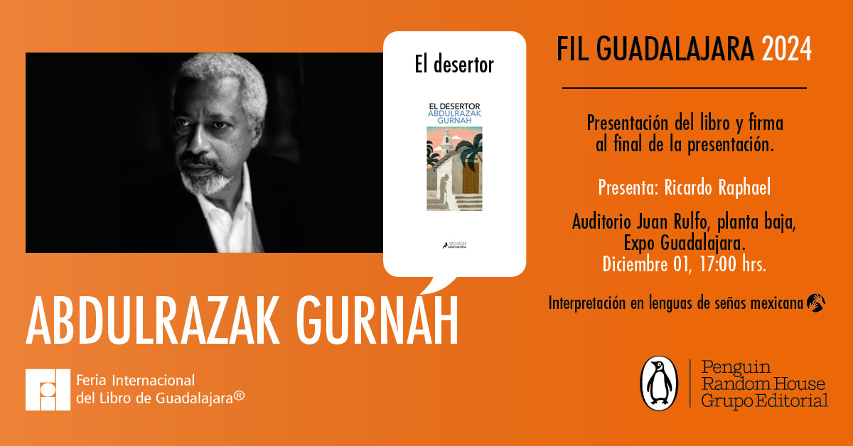 El premiado autor de origen tanzano ofrecerá una conferencia magistral y presentará su nuevo libro El desertor, como parte de la 38 edición de la Feria Internacional del Libro en Guadalajara.