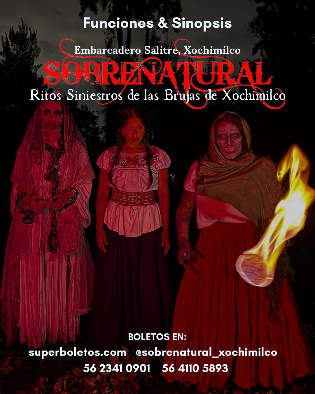 Esta obra teatral que cuenta con 13 años de representaciones.Es una experiencia que acaricia todos los sentidos,ya que todo comienza en un viaje nocturno en trajineras desde el Embarcadero Salitre.Este recorrido llega a un escenario natural sobre una chinampa .Todo esto acompañado de maravillosos actores,iluminación majestuosa,imágenes impresionantes y psicofonias reales para dar un gran toque de terror.