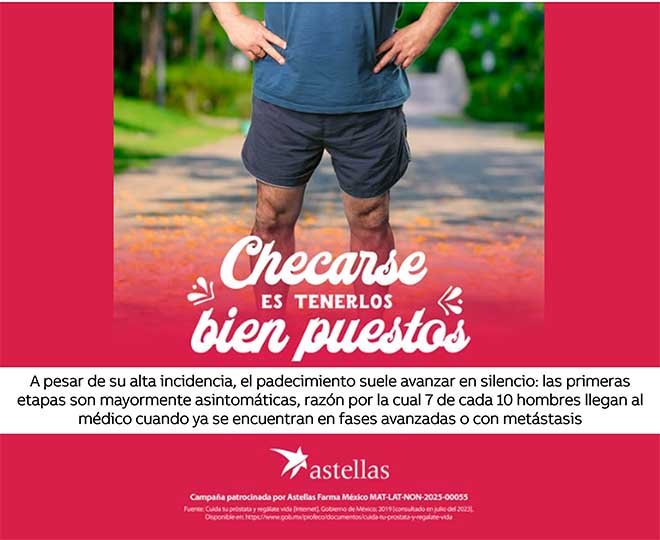 “Hoy más que nunca necesitamos derribar estigmas. Un examen de próstata no define la masculinidad; define la oportunidad de vivir más años con salud. Nuestro mensaje es claro: prevenir es un acto de responsabilidad hacia uno mismo y hacia la familia”, afirmó la doctora Isabela Rivas, directora Médica de Astellas Farma México.
