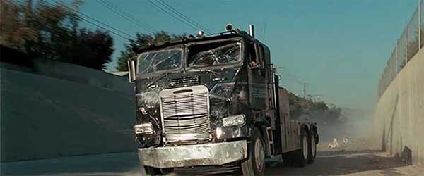 En Terminator 2 el tráiler que persigue a John Connor y al T-800 (Arnold Schwarzenegger)  por los canales de desagüe de Los Ángeles se convirtió en uno de los camiones y escenas más memorables de la historia del cine de acción. Este coloso es un Freightliner FLA 9664 del año 1984, un modelo robusto y cuadrado que James Cameron transformó en un depredador mecánico para la secuencia de persecución más famosa de la película.