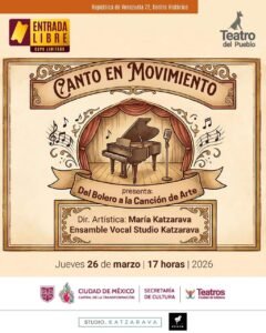 La cita para este segundo encuentro musical del ciclo mensual de Canto en movimiento es el próximo martes 14 de abril a las 17 horas, en el majestuoso Teatro del pueblo de la calle de República de Venezuela, en el Centro Histórico, que con su entrada gratuita lo hace imperdible.
