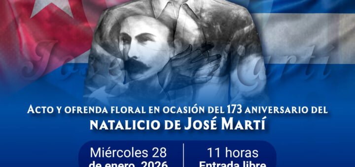 En el marco del 173 aniversario del natalicio de José Martí, la Secretaría de Cultura de la Ciudad de México, en coordinación con la Embajada de Cuba en México, realizará un acto cívico, ofrenda floral...